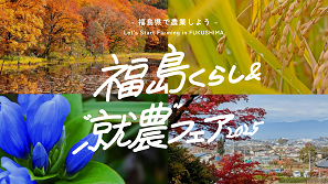 あなたにピッタリのふくしまぐらしを見つけませんか? 全国で3番目に大きい福島県。 会津・中通り・浜通りの3つのエリアごとに、気候や風土が大きく異なり、 くらしの選択肢が多い福島県は、あなたにピッタリのふくしまぐらしが見つかるはずです! 福島に住んで、自分らしいライフスタイルを実現してみませんか?