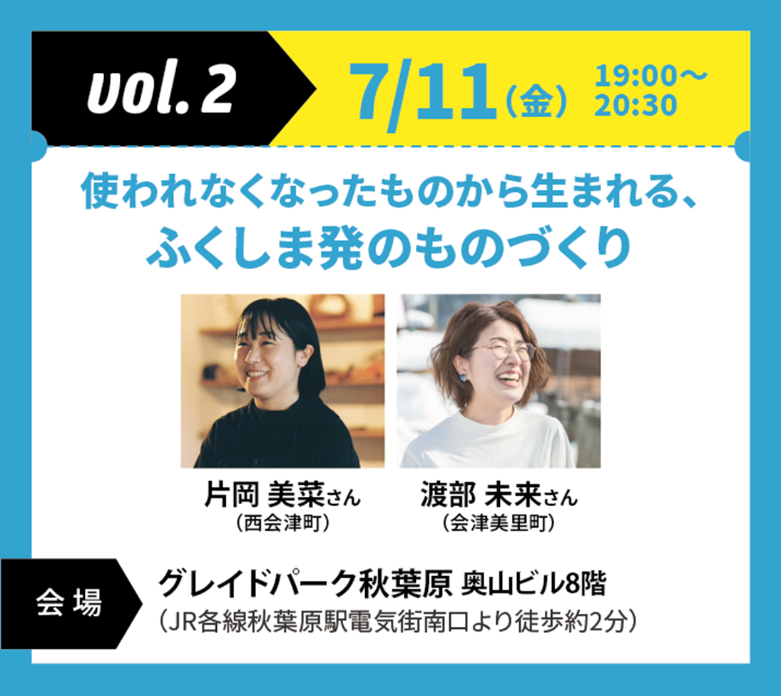 都内セミナーの第2弾は、「使われなくなったものから生まれる、ふくしま発のものづくり」と題して、