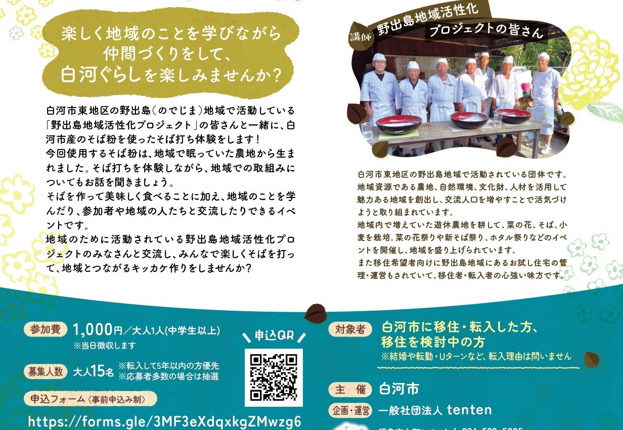 9月20日(土)に白河市・東多目的研修センターにて「WELCOMEワークショップ(そば打ち体験)」を開催します。皆様のご参加をお待ちしております!