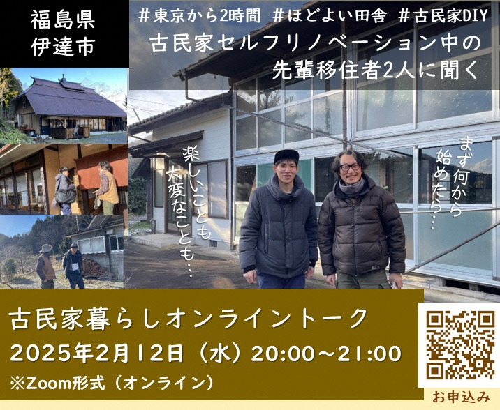 【2月12日 水曜日】伊達市・移住&古民家DIYオンラインイベント「古民家暮らしオンライントーク」
