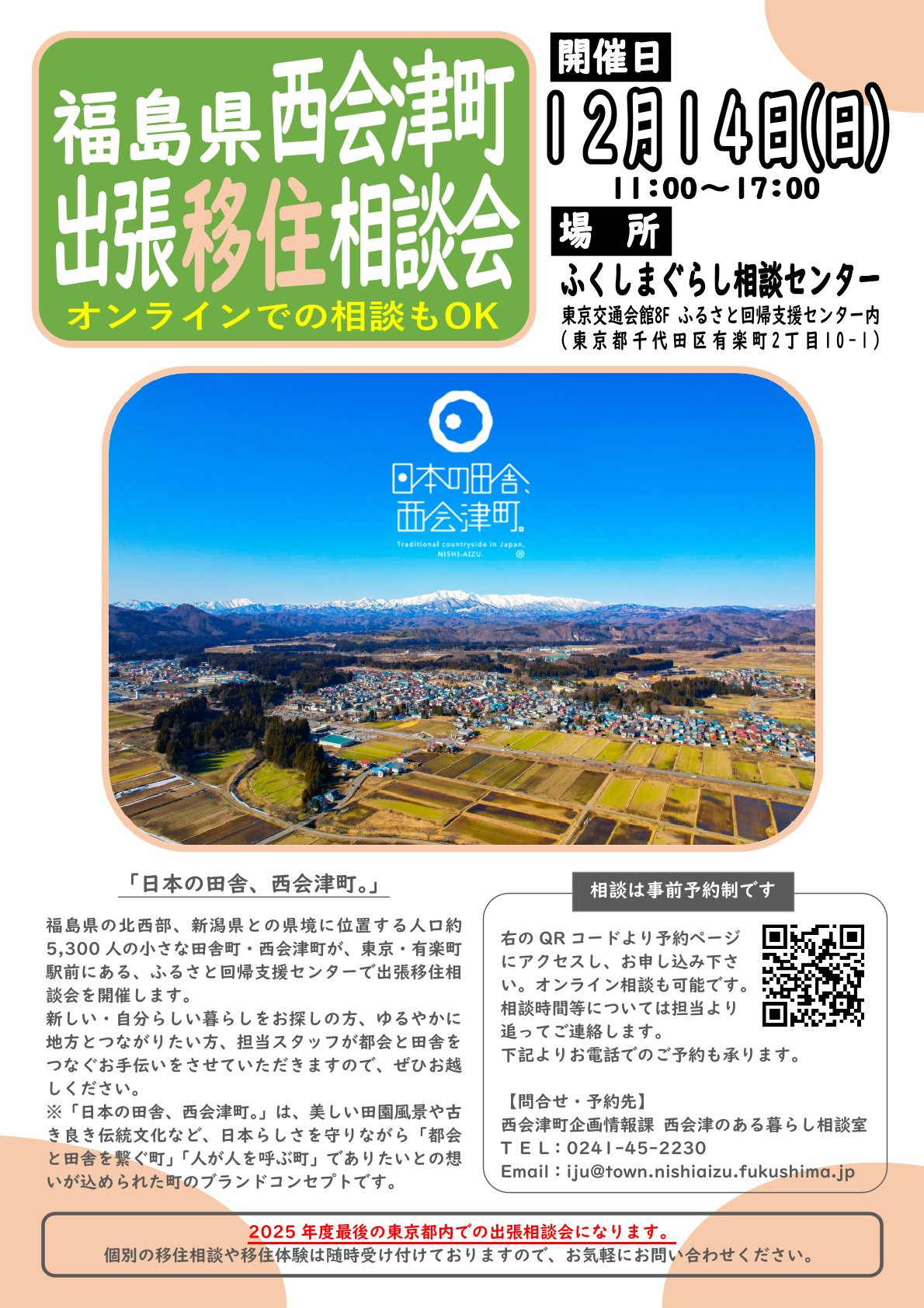 【西会津町】出張移住相談会を開催します!