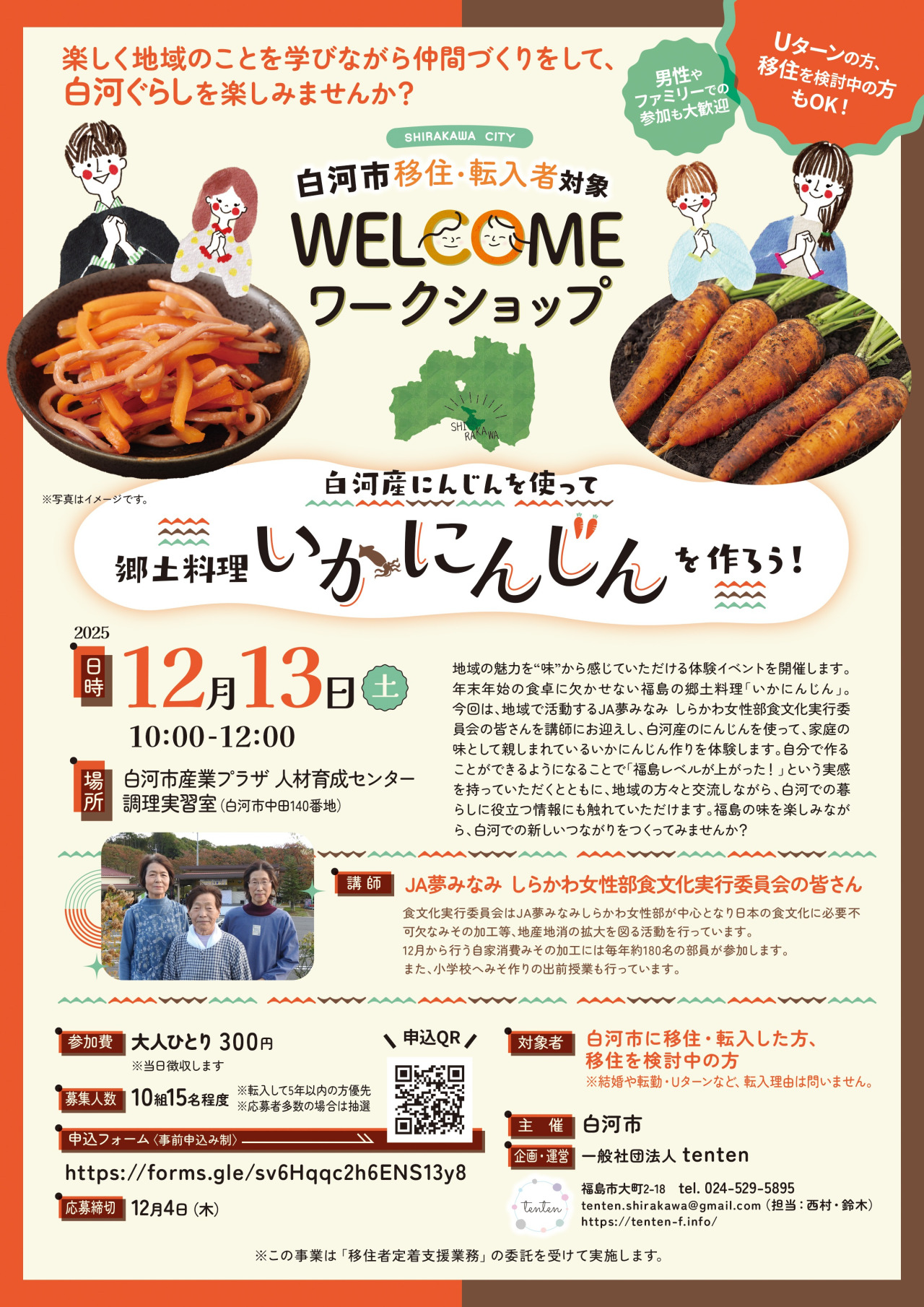 【白河市】移住・転入者対象「WELCOMEワークショップ ~郷土料理 いかにんじん作り体験~」を開催します!