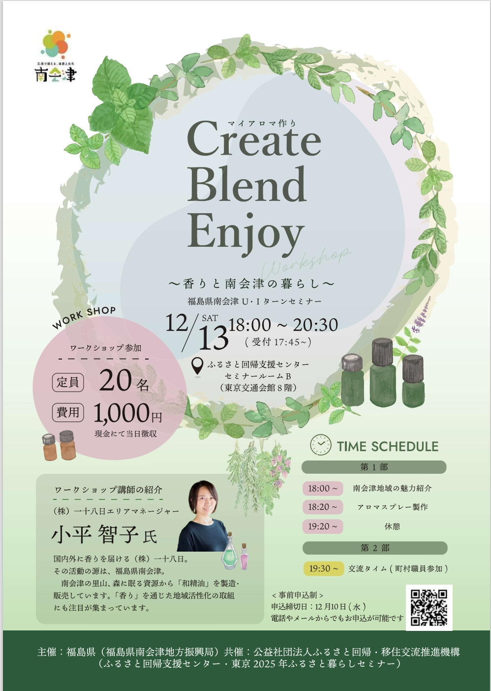 ワークショップでは、香りを選び、ブレンドする過程を体験し、出来上がる喜びを味わえます!