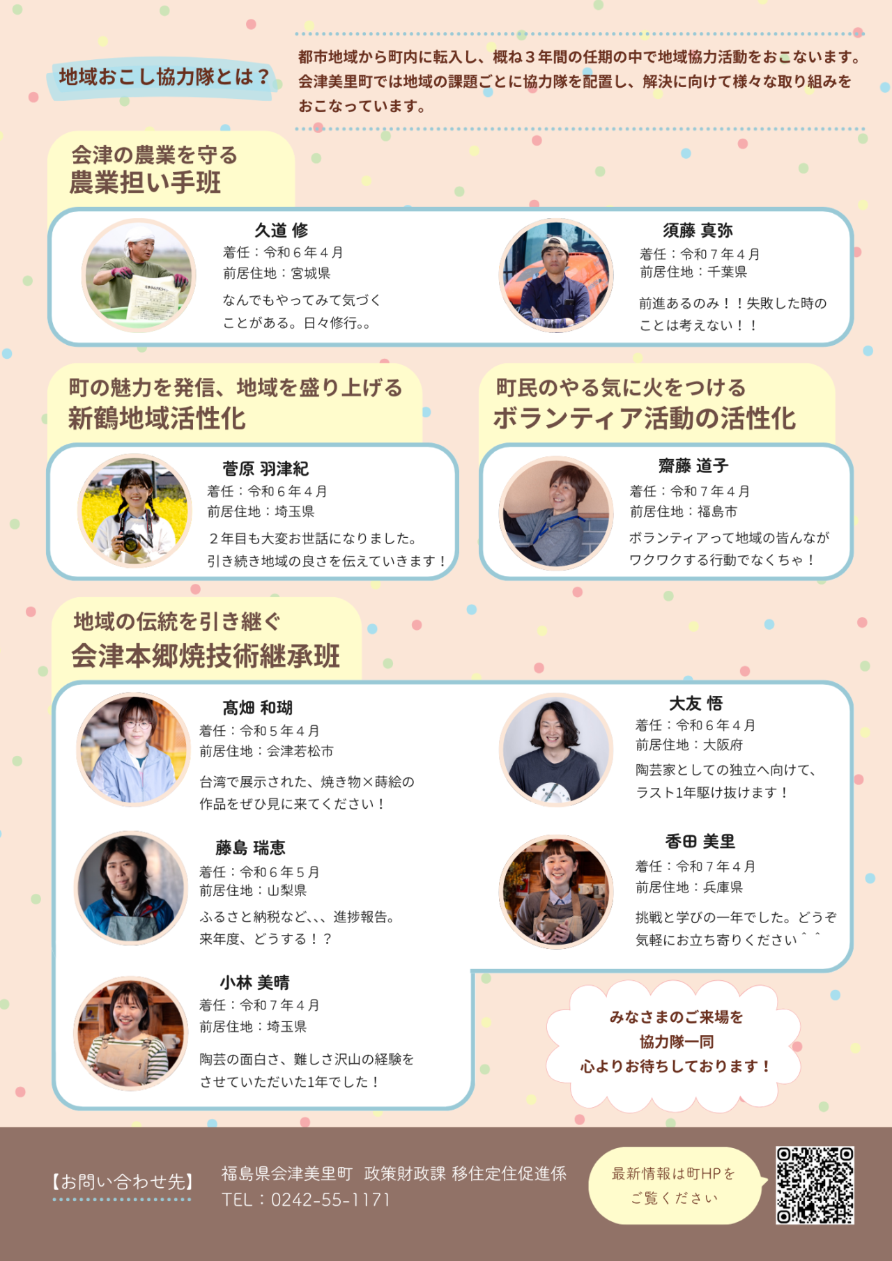 4.お問い合わせ先 | 会津美里町政策財政課移住定住促進係 電話 0242-55-1171 |