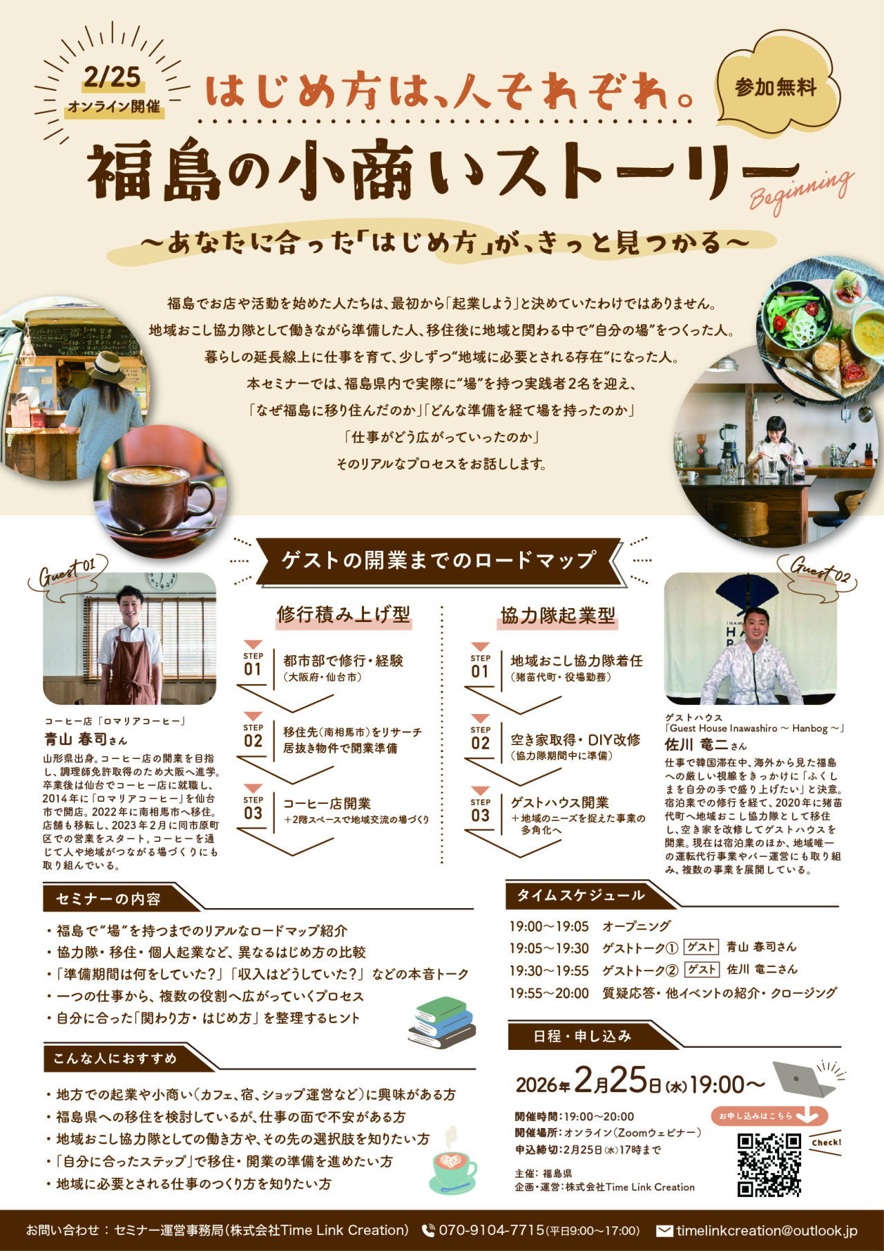 【2/25(水)19時〜オンライン開催】「はじめ方は、人それぞれ。福島の小商いストーリー 〜あなたに合った「はじめ方」が、きっと見つかる〜」セミナー参加者募集!