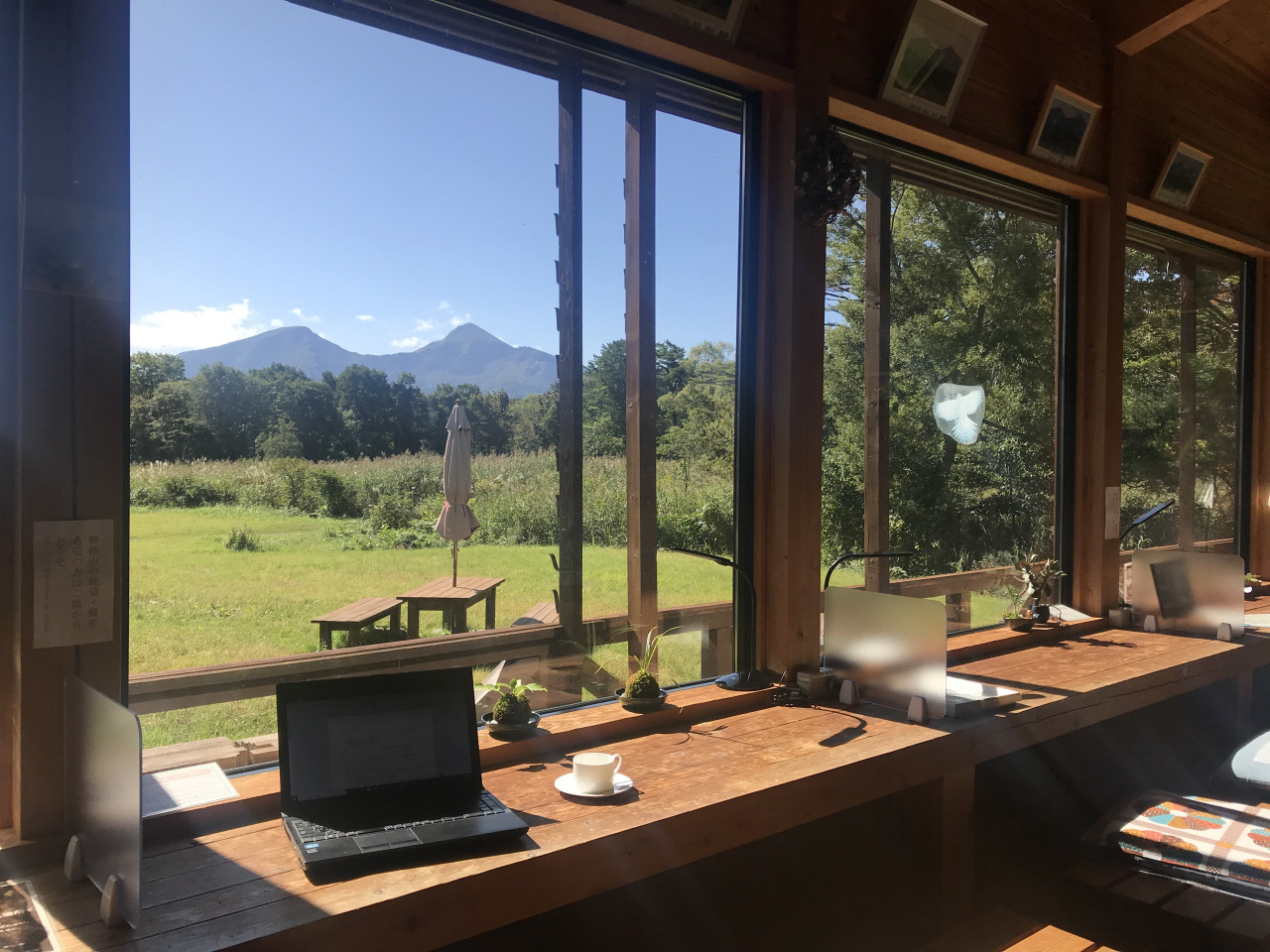 磐梯山を眺めながらワーケーションが出来る場所です。