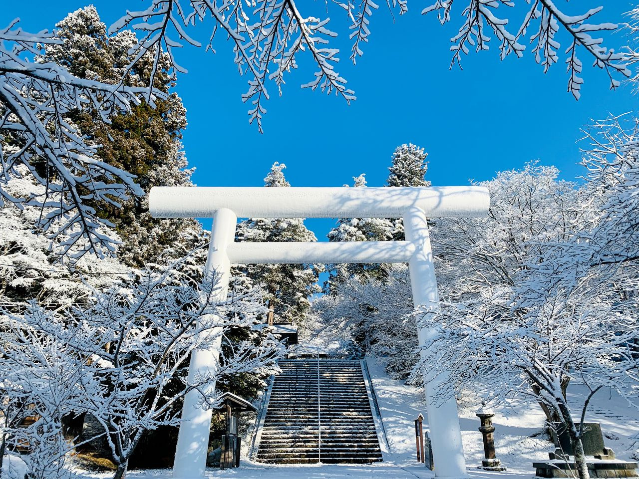 純白の大鳥居が迎える、会津の歴史と四季の移ろいに包まれる杜。