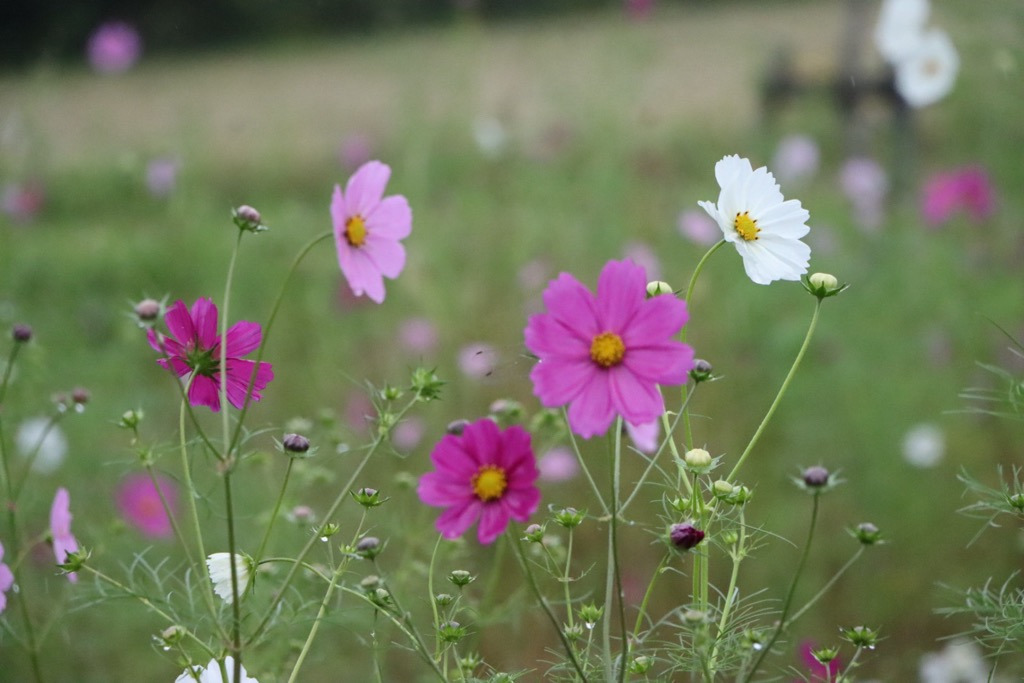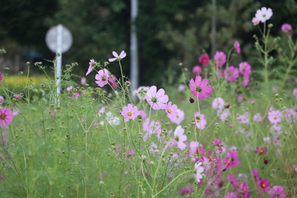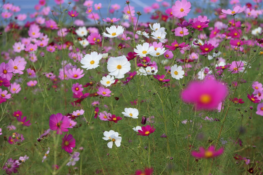 学生や地域事業者が共に種をまき、見頃を迎えると大切に育てた色鮮やかなコスモスが一面に咲き誇ります。
