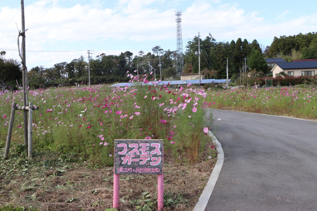 町の花「コスモス」を通じて新たな賑わいを作るため、町と福島学院大学マネジメント学部地域マネジメント学科が連携して誕生した秋の映えスポット。