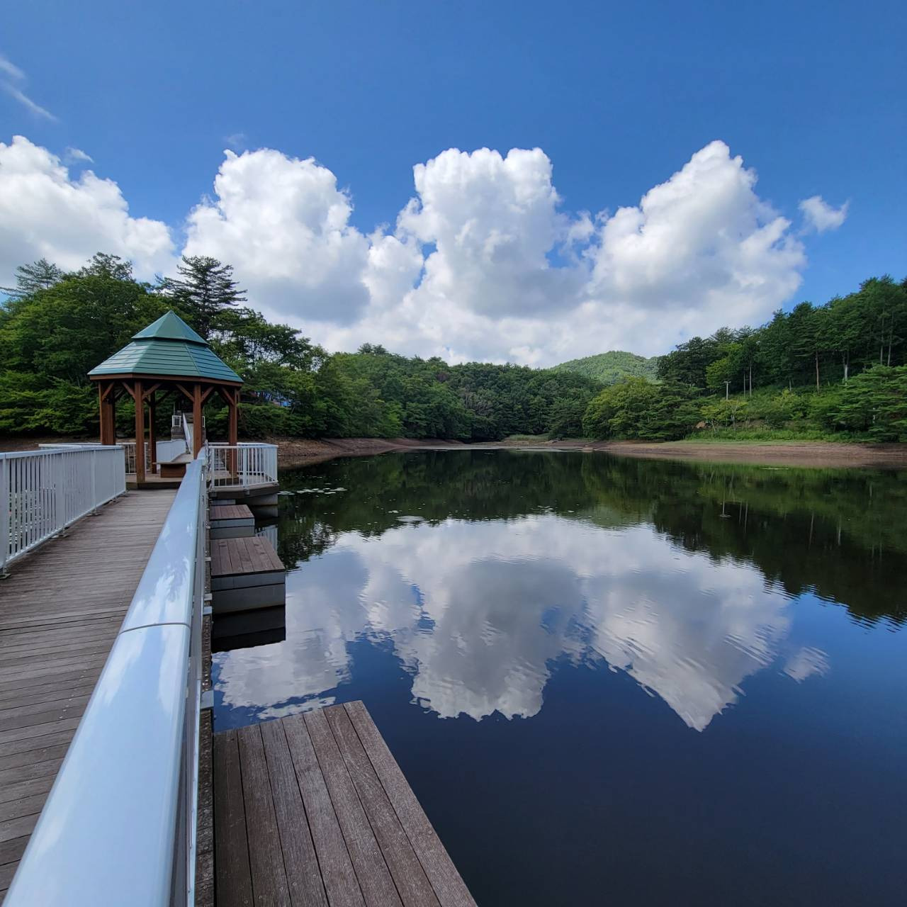 水辺を渡る「あいの浮橋」の散策に加え、古民家が並ぶ「民家園ふるさと」での催しなど、自然と文化に深く触れるキャンプ体験が叶います。