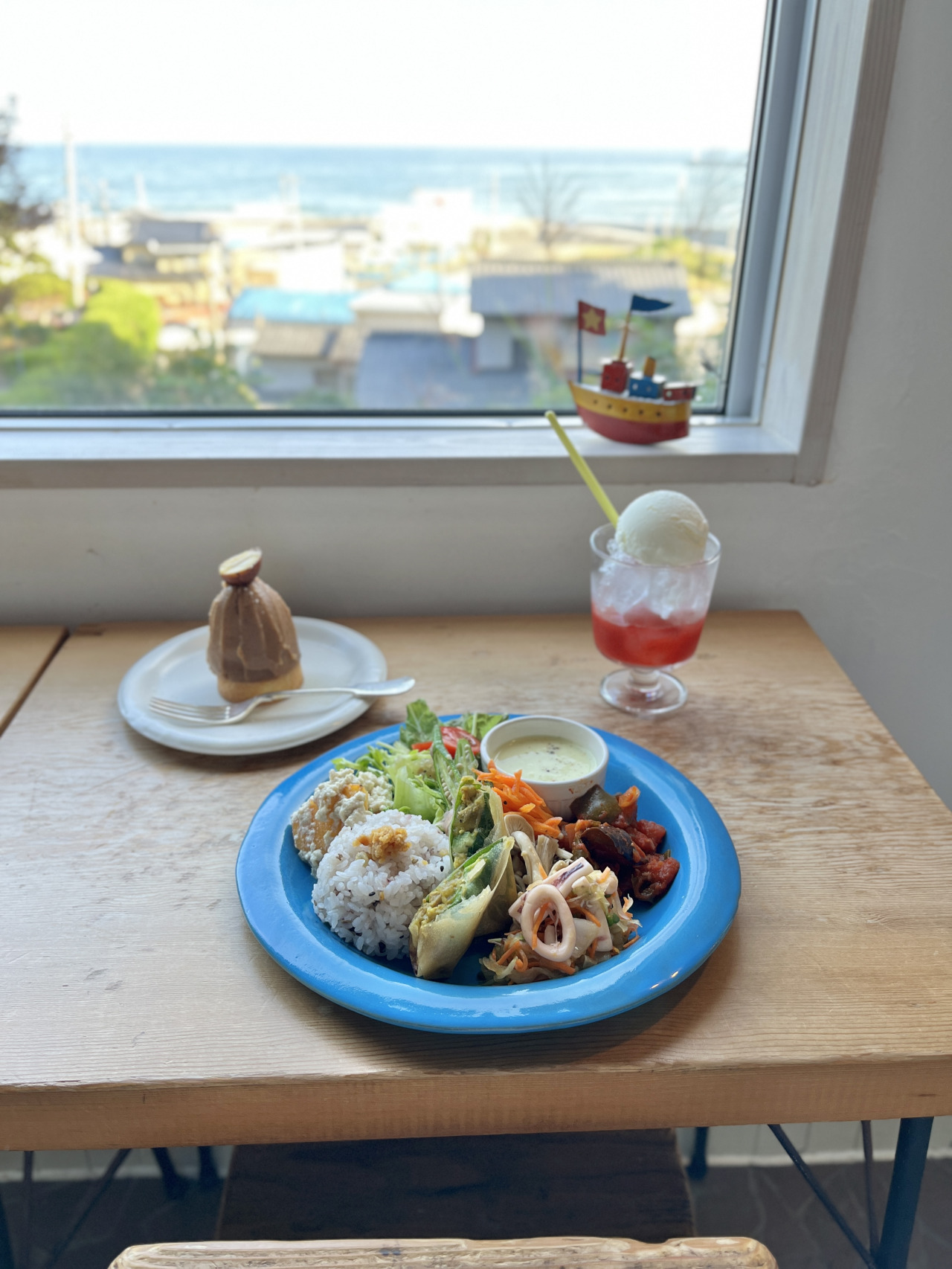 いわき市の海を見下ろす高台に佇む、築50年の民家をDIYで修復した温もりあふれるカフェ。