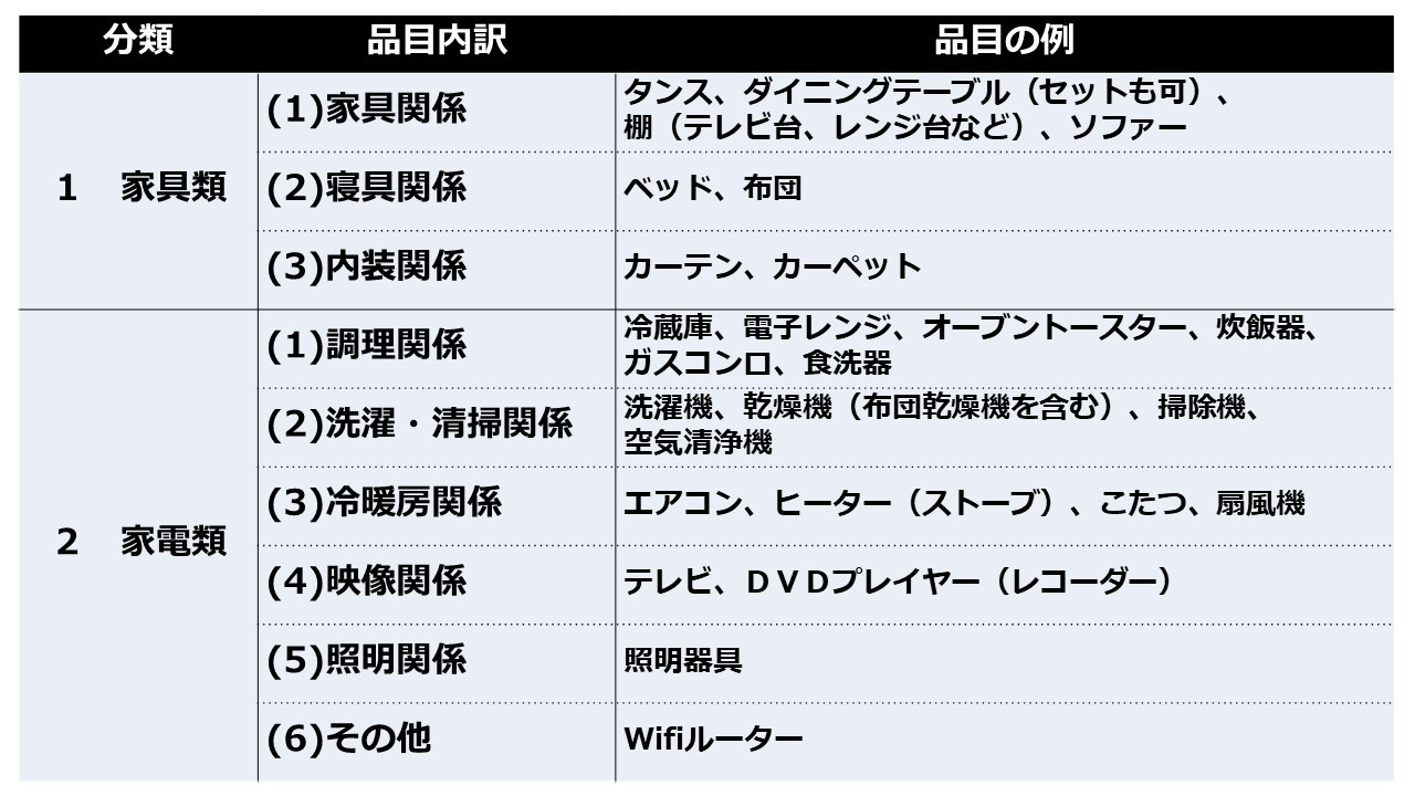 (注意)家具・家電購入費用は上限金額のうち10万円まで申請が可能。