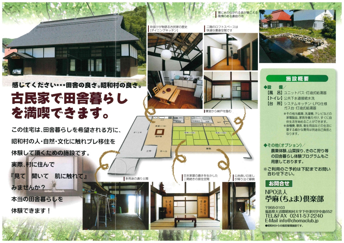 田舎暮らしを希望される方に、プレ移住の体験をしていただくための古民家を改修した施設。